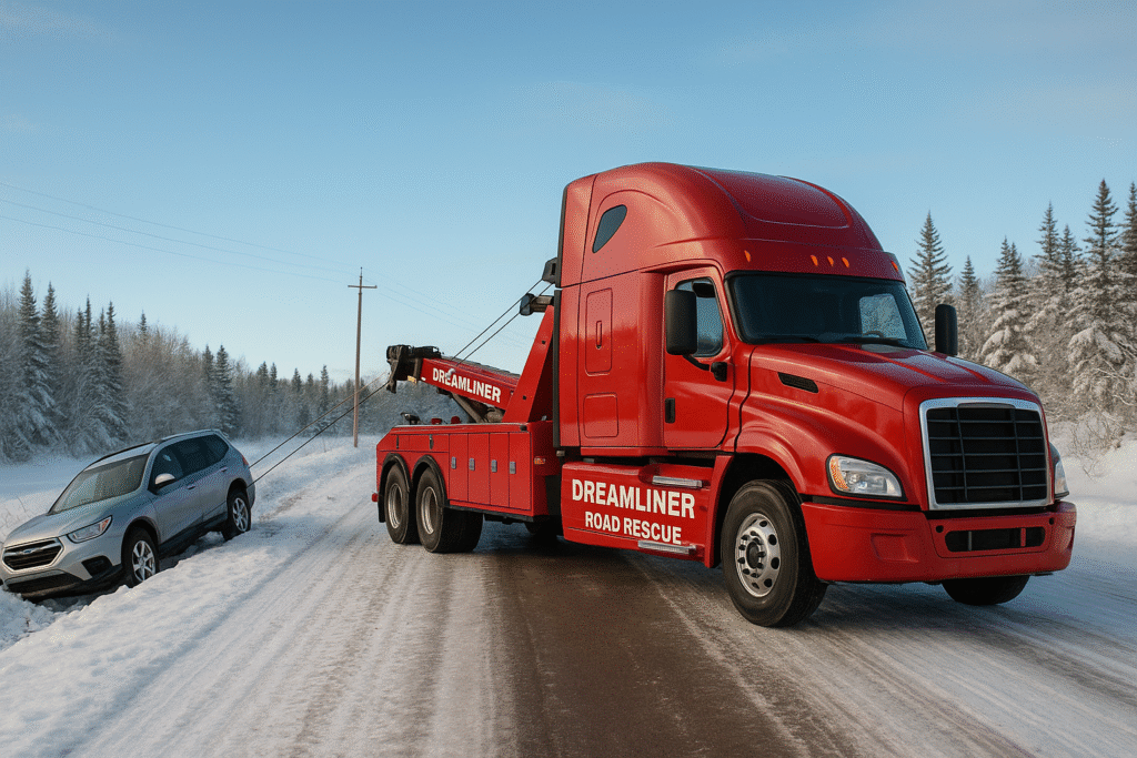 Our winching and recovery service is designed to handle the toughest situations, particularly in Northern Manitoba’s challenging terrain. Whether your vehicle is stuck in a ditch, snowbank, deep mud, on soft shoulders, or on icy roads, our trained technicians use high-strength winches, recovery straps, snatch blocks, and advanced extraction techniques to safely and without damage recover your vehicle.